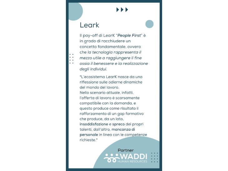 I suoi valori principali sono affidabilità, competenza e riservatezza, identificandosi come partner ideale per l’azienda e per le persone che la compongono. Proprio per l’importanza che danno alla relazione tra il cliente e il candidato hanno deciso di collaborare con LearK e intervistare il nostro PM Maurizio Tortini.